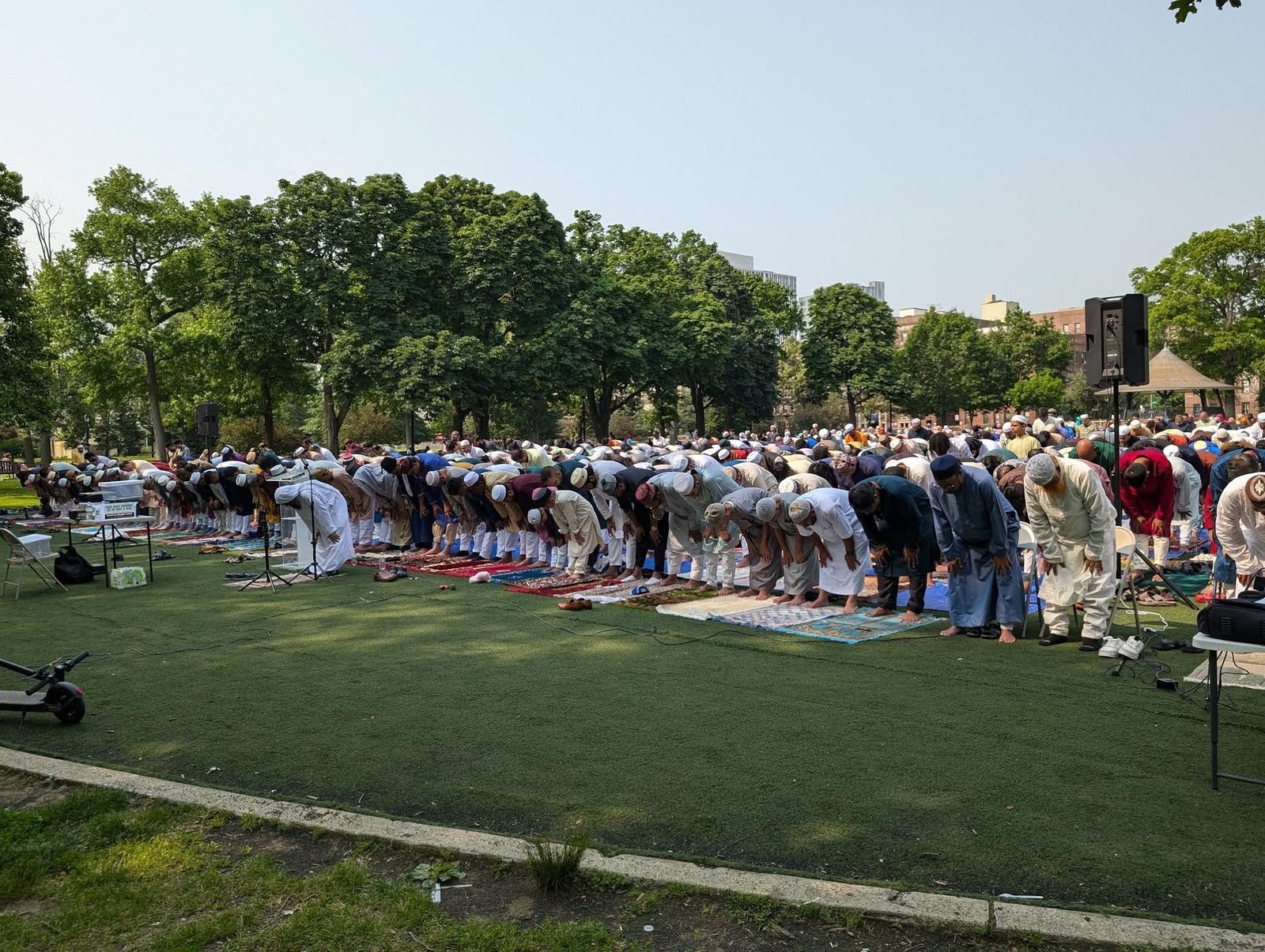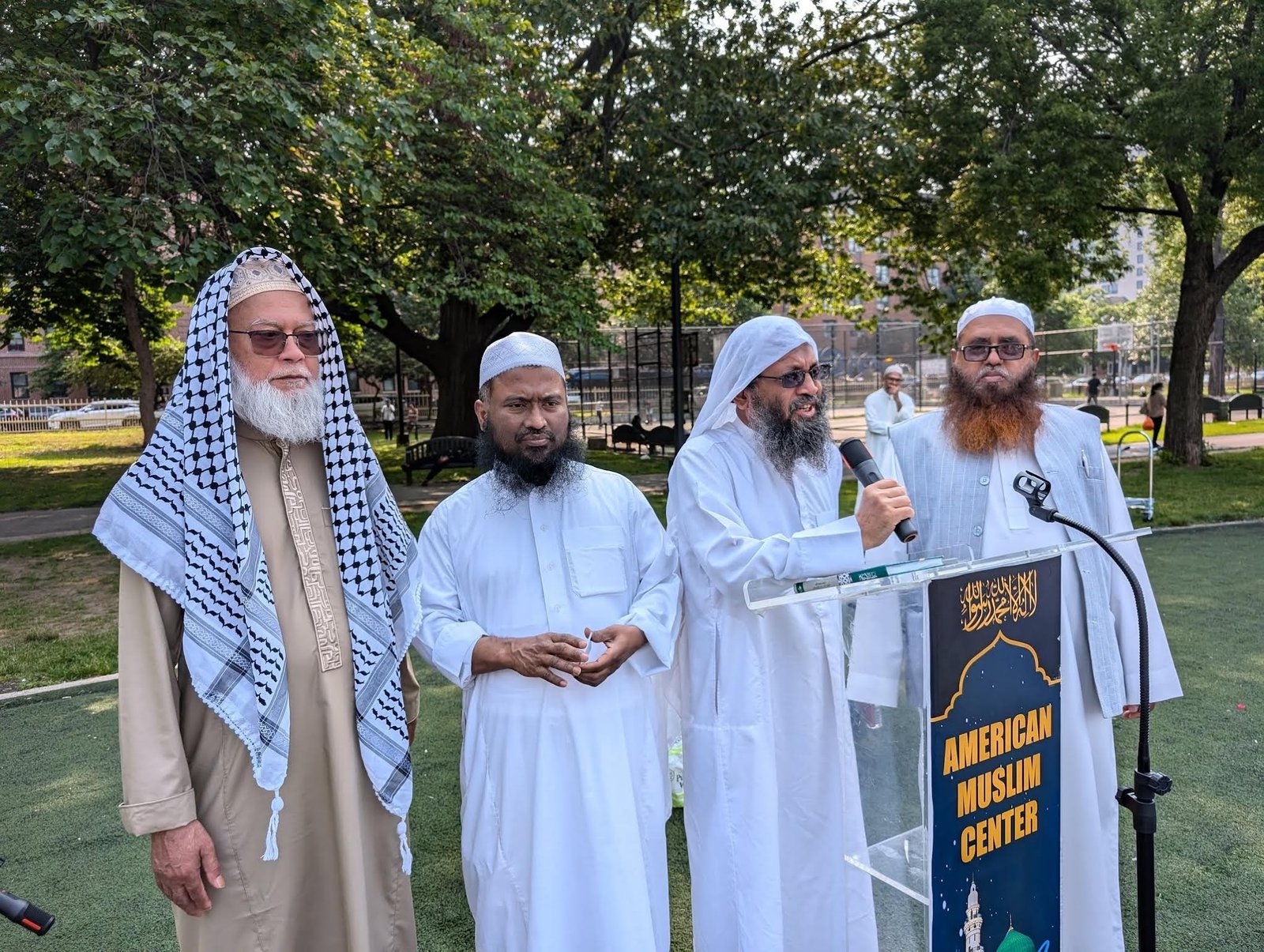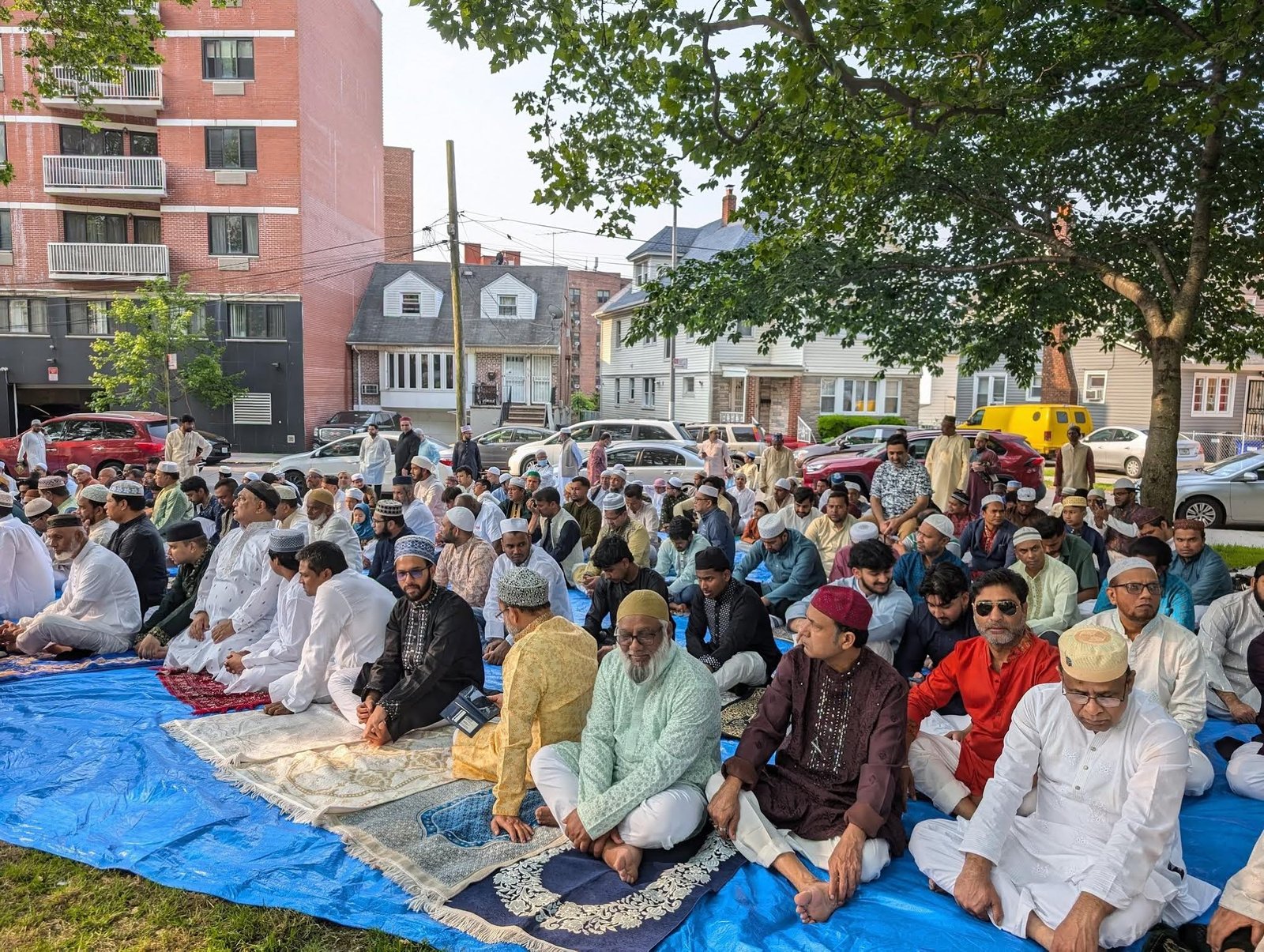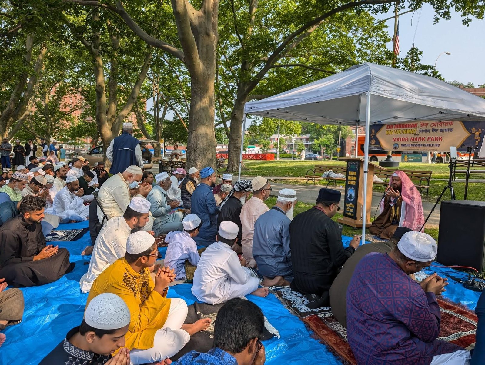 ম্যানহাটানের মদিনা মসজিদের উদ্যোগে একটি জামাত হয় সকাল সাড়ে ৮টায় মসজিদ সংলগ্ন পার্কে।