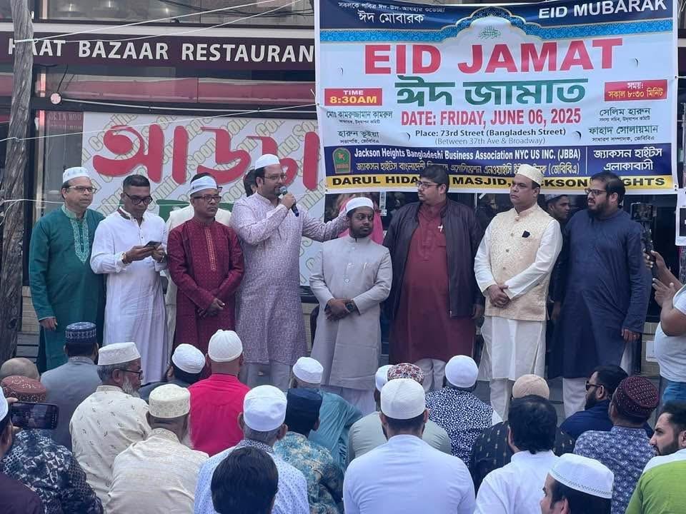 জ্যাকসন হা্ইটসের ৩৭ এভিনউ ও ব্রডওয়ের মাঝখানে ৭৩ ষ্ট্রীটের উপর ঈদের জামাত অনুষ্ঠিত হয় জ্যাকসন হাইটস বাংলাদেশী বিজনেস এসোসিয়েশানের আয়োজনে। উক্ত জামাতে বক্তব্য রাখেন নিউ ইয়র্ক সিটি মেয়র নির্বাচনের ডেমোক্র্যাটিক প্রাইমারীতে অংশগ্রহণকারী মেয়র পদপ্রার্থী জোহরান মামদানী ও স্থানীয় সিটি কাউন্সিলম্যান শেখর কৃষনান, জ্যাকসন হাইটস বাংলাদেশী বিজনেস এসোসিয়েশানের প্রসিডেন্ট হারুন ভুইয়া, কমিউনিটি এক্টিভিষ্ট ফাহাদ সোলায়মান, বাংলাদেশ সোসাইটি নিউ ইয়র্কের ভাইস প্রেসিডেন্ট কামরুজ্জামান কামরুল প্রমুখ। এছাড়া জ্যাকসন হাইটসের ডাইভারসিটি প্লাজায় নিউ ইয়র্ক ইদগাহ-র আয়োজনে একাধিক ঈদের জামাত অনুষ্ঠিত হয়।