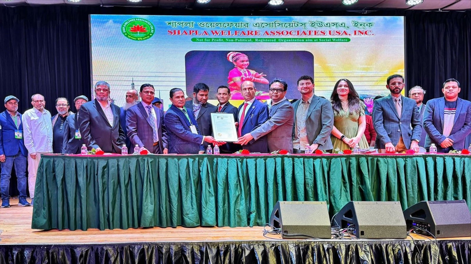 অনুষ্ঠানের বিশেষ মুহূর্তে, ইমিগ্রান্টস ইন্টারন্যাশনালের পক্ষ থেকে শাপলা ওয়েলফেয়ার অ্যাসোসিয়েটস ইউএসএ ইনক.-কে কমিউনিটিতে গুরুত্বপূর্ণ অবদানের স্বীকৃতিস্বরূপ একটি প্রকলেমেশন সার্টিফিকেট প্রদান করা হয়।